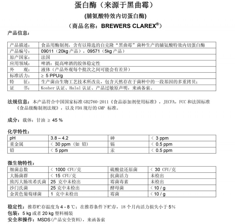 脯氨酸特效内切蛋白酶 BREWERS CLAREX®