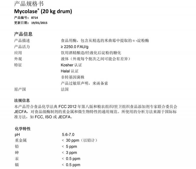 下一篇:麦芽糖淀粉酶 Bakezyme Fresh XL