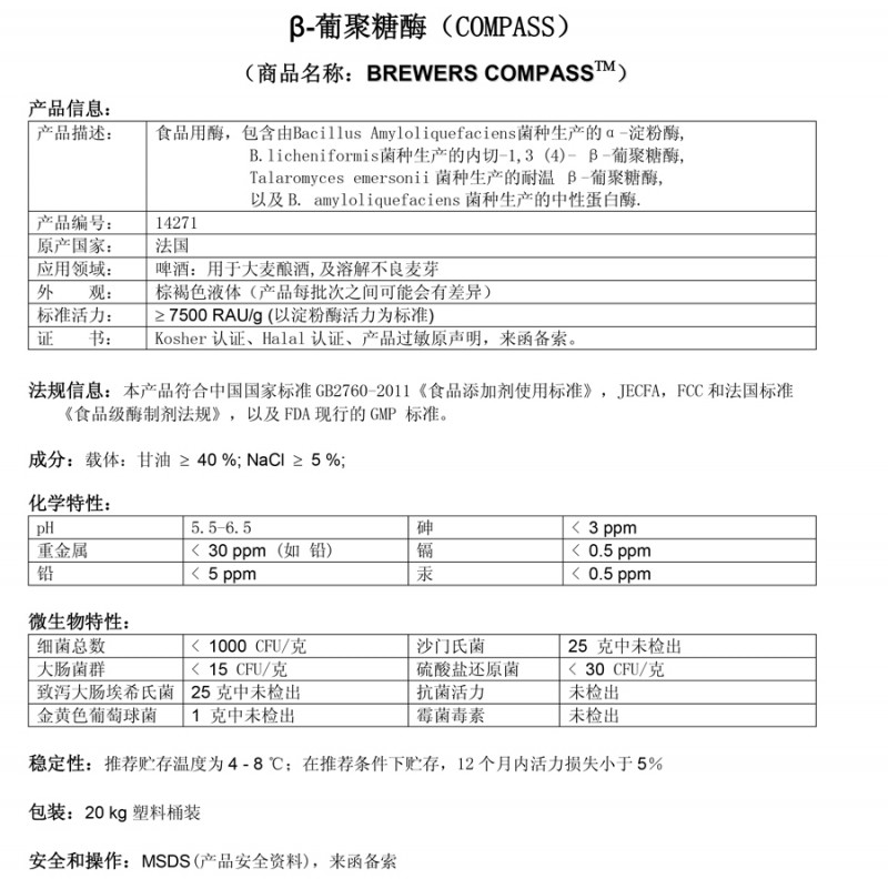 β-葡聚糖酶 Brewers Compass
